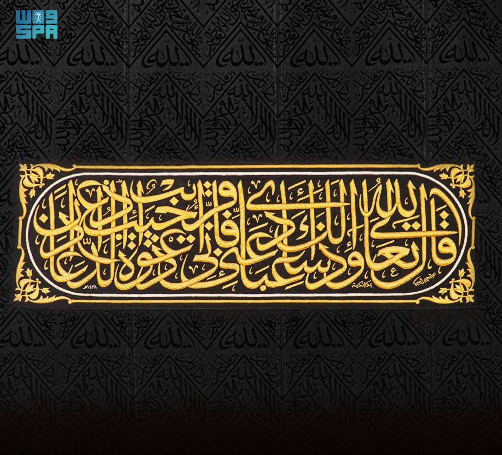 الخط العربي بأسلوب الثلث الجلي.. يزهو كسوة الكعبة المشرفة🕋