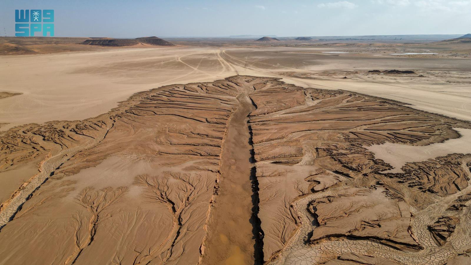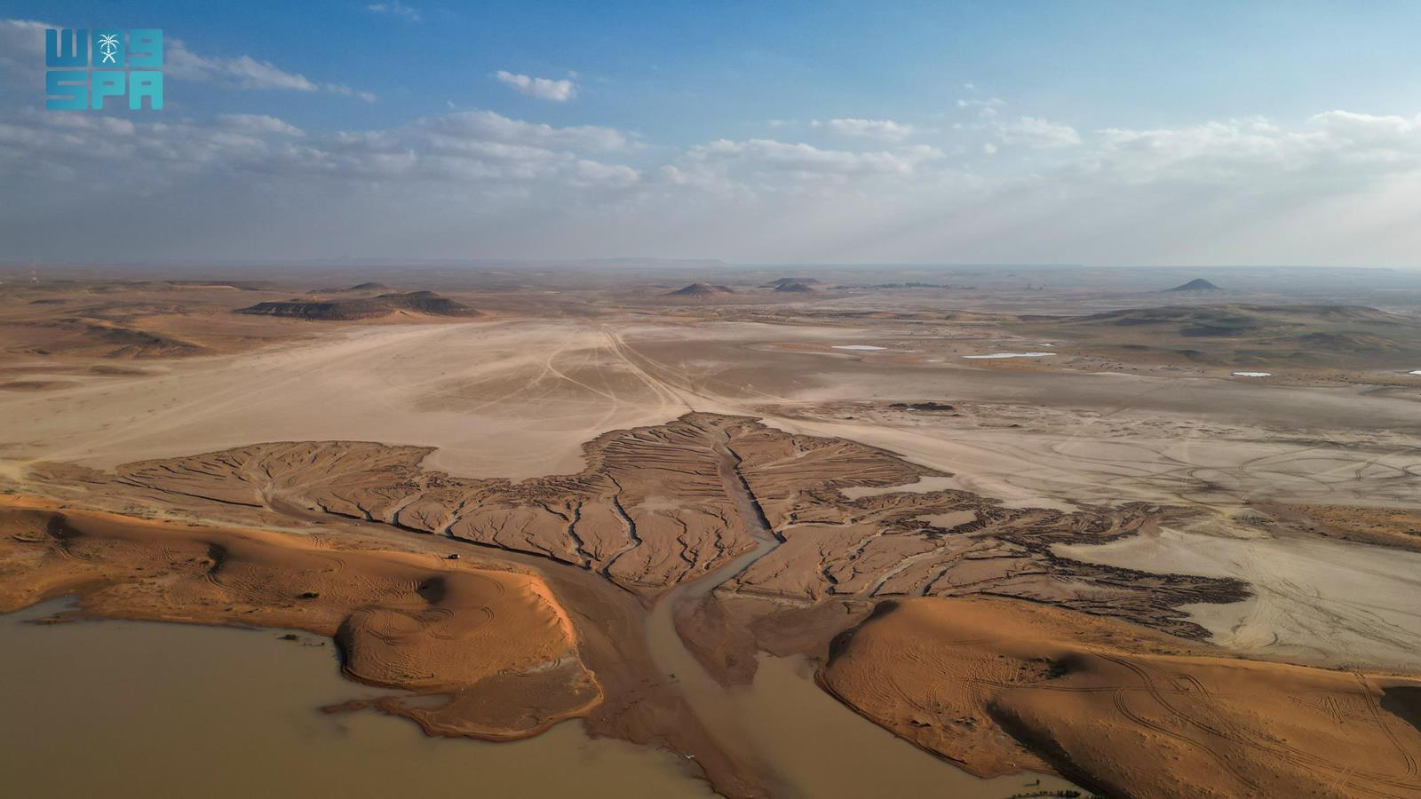 الأمطار ترسم في قاع " الحوي " بتيماء أجمل المناظر الطبيعية