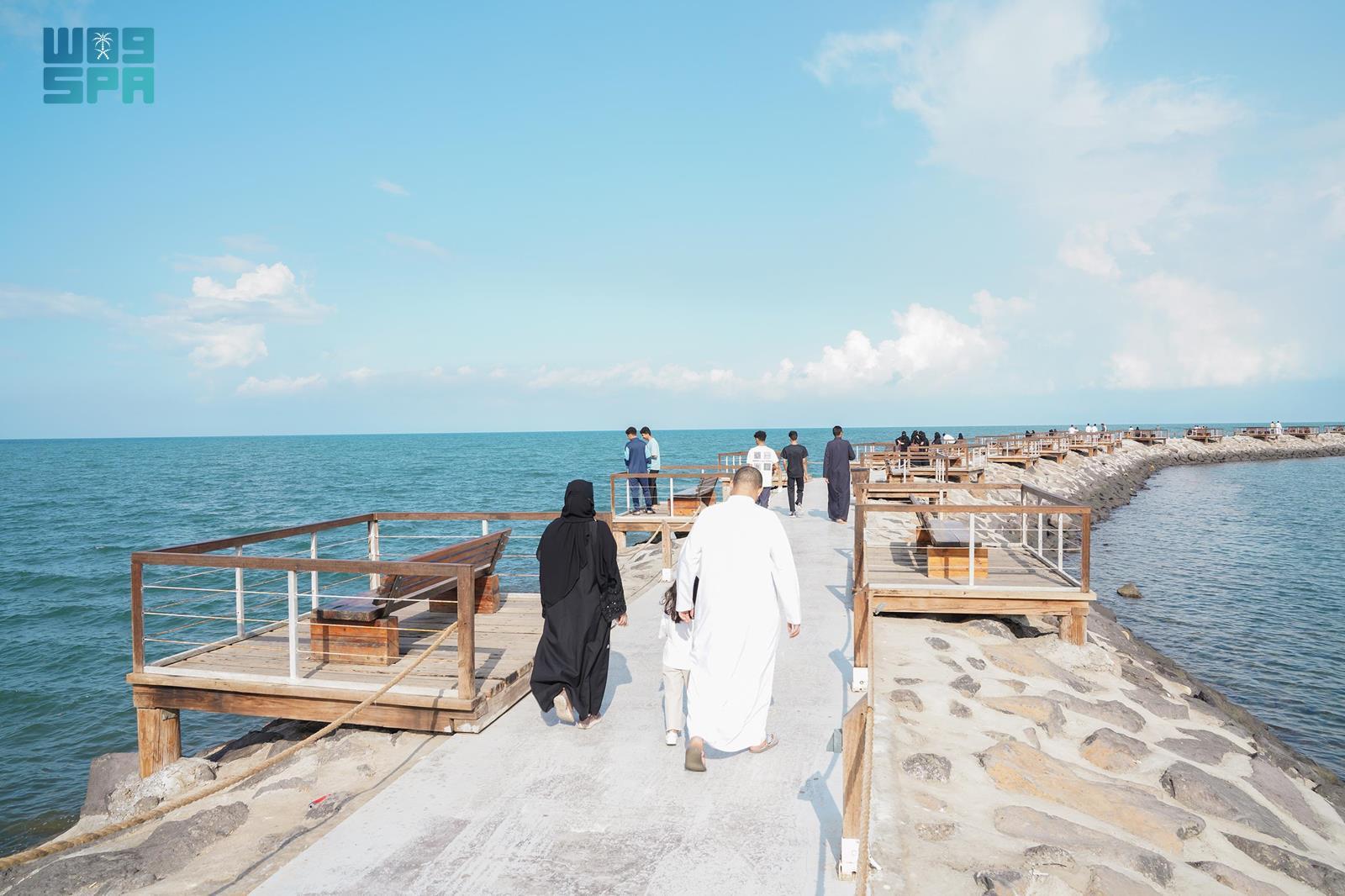 أجواء جازان الماطرة والغائمة تدفع العائلات والزوار للخروج للتنزه في المواقع السياحية